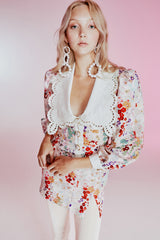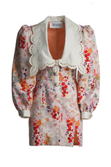 This pretty dress captures Greta Boldini's vintage influences so beautifully with a funny touch. Made In Italy from blooms pattern, and popeline details, embellished with a so precious, embroidered and 'lace effect' collar. Style it with diamond earrings to match the sparkling jewels buttons.
