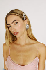 Peony slip dress in pure silk chiffon, cut on the bias so it skims the body with effortless lightness. The ultra-fine spaghetti straps trace a delicate neckline, while the diagonal chiffon flounces create a soft, petal-like movement with every step. The fabric comes from a precious leftover of our To the Moon & Back FW22 collection, brought back to life in a new dream-worthy version.