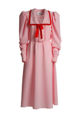 It is the bold shade of 'candy' pink, paired with red silk details, that makes the sophisticated Sakura midi dress so fresh and striking. Made of pure wool, it has a vaguely bourgeois collar and a semi-fitted bodice worked with pleats and micro pleats before falling over a full skirt. Wear it with tone-on-tone sandals or pointed pumps.
