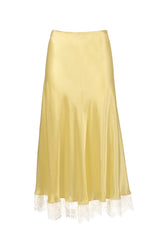Eglantine skirt in pure silk satin with French lace trim – a luminous slip skirt that skims the hips like a caress. The soft, fluid satin catches the light with every step, while the French lace hem adds a romantic detail that makes it perfect from day to night.