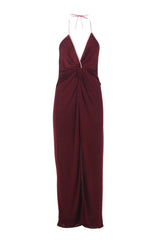 Myralise dress in fluid jersey with a soft, subtly lustrous hand, designed for those evenings when one gesture is all it takes to be ready. The plunging halterneck, central draping and column silhouette shape the figure effortlessly, while the front slit adds a touch of understated seduction. Crafted from a precious leftover of our HER FW18 collection, it’s the kind of evening dress you slip on in seconds and keep on until the very last toast.