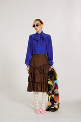 Here it’s styled with the Mousselie skirt and Dolce Luna earrings for a “Sunday art-house cinema” mood, but it works just as well with simple denim and flat shoes.