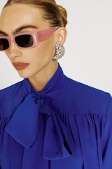 Cremebelle shirt in 100% silk crepe de chine, the chic blouse you’ll always want in your suitcase – for the city, the office or a weekend getaway. The neck bow and gathered yoke give it a French rétro allure, while the fluid silk falls softly over trousers or tucked into your favourite skirt.